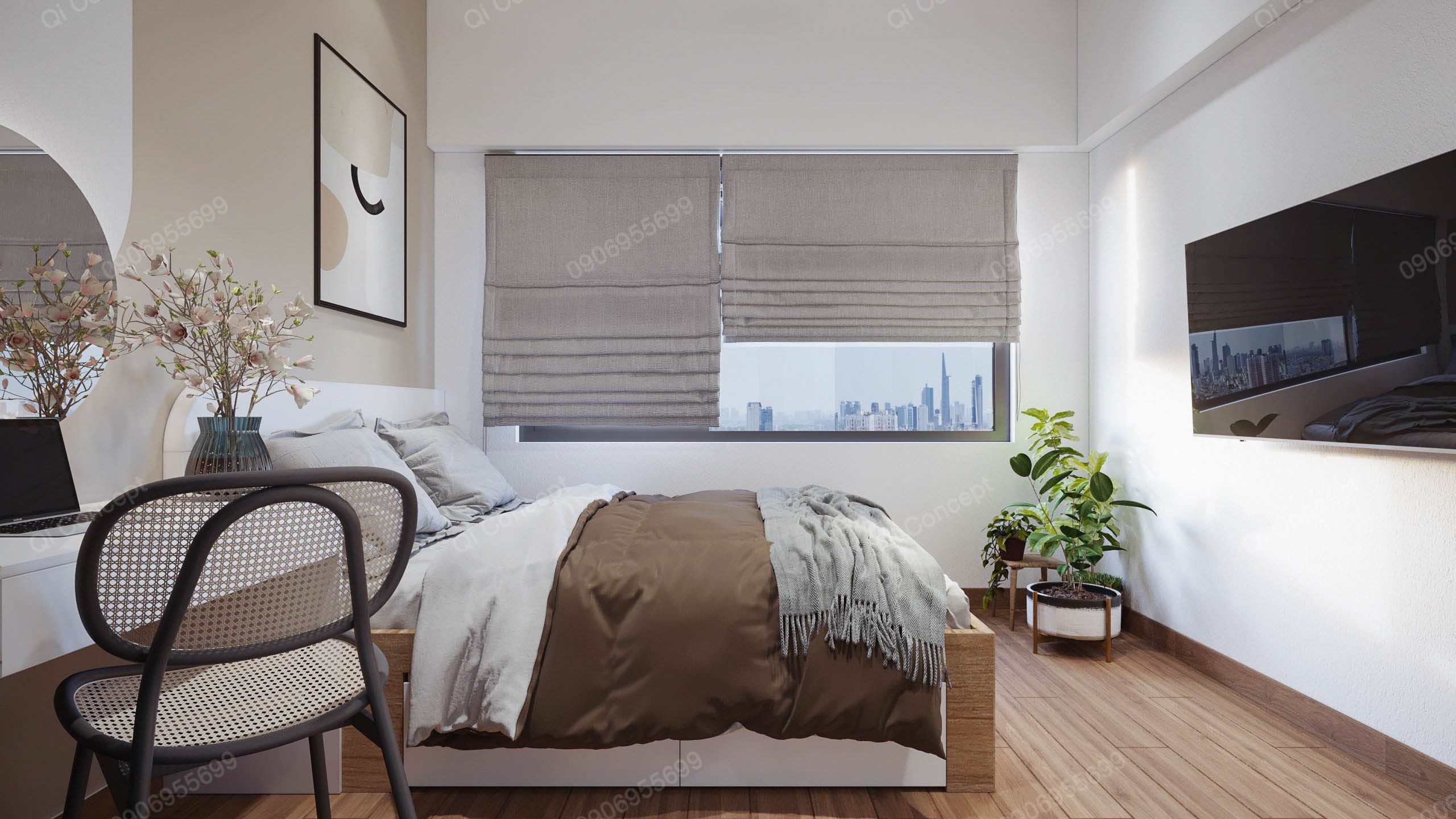 Thiết kế nội thất phòng ngủ phụ mặt bằng Akari City