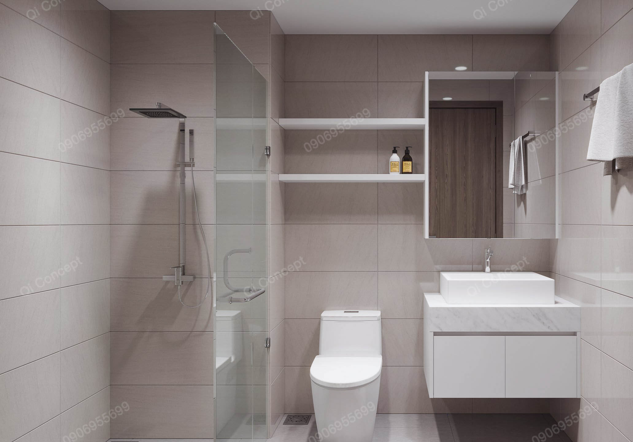 Khối tắm hiện đại trong căn hộ Japandi Q7 Saigon Riverside – Hưng Thịnh