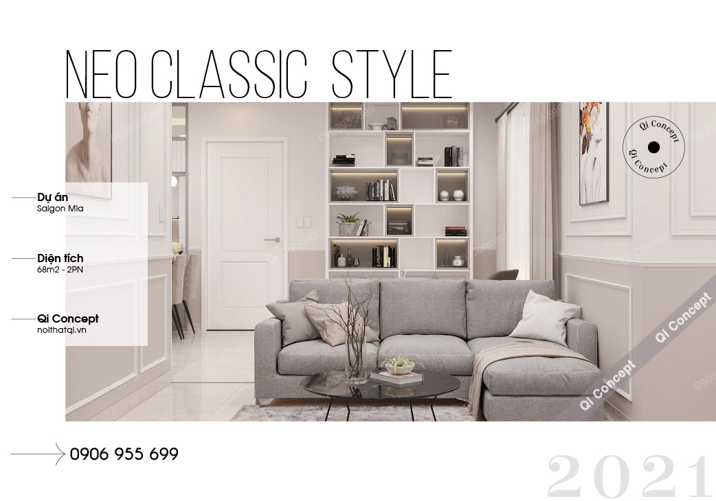 Lấy cảm hứng từ phong cách cổ điển truyền thống, kết hợp nét đẹp phóng khoáng của hiện đại. Qi Concept đã tạo nên nội thất căn hộ 2 phòng ngủ phong cách Tân cổ điển. Mang đến không gian sống hiện đại và sang trọng vô cùng. Liên hệ ngay với chúng tôi để sở hữu một không gian sống như bạn hằng mong ước nhé!